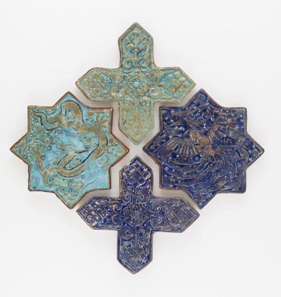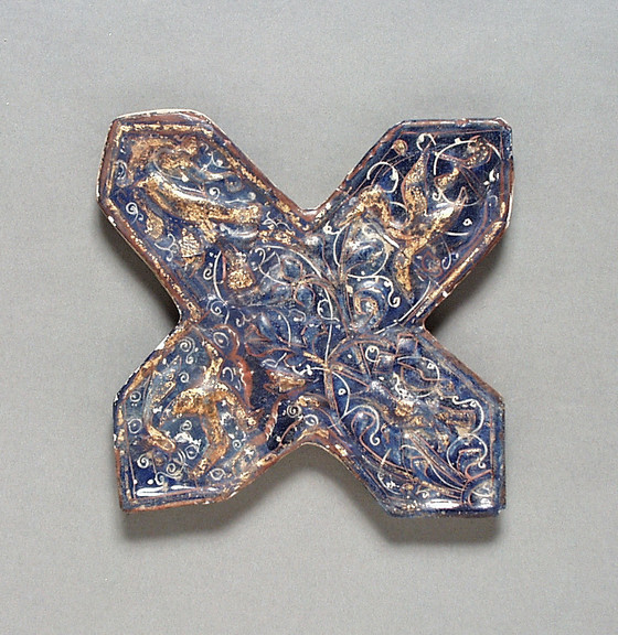 Fritware, overglaze painted with colors and gold (lajvardina)