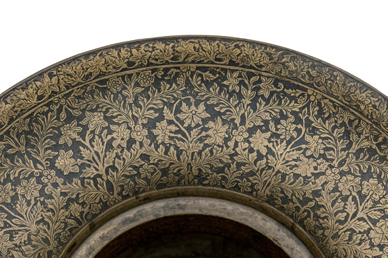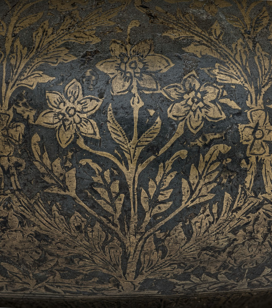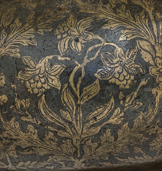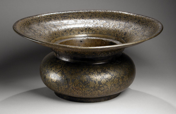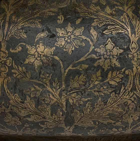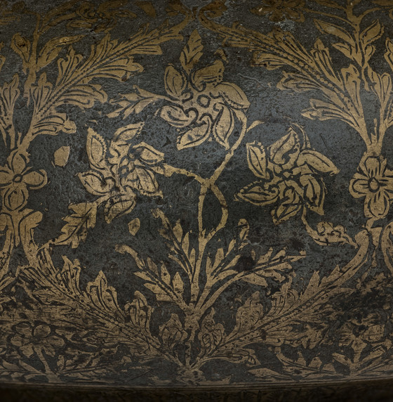 Brass inlaid with a dark gray ground, cast and engraved (bottom); brass inlaid with a dark gray ground, engraved (top)