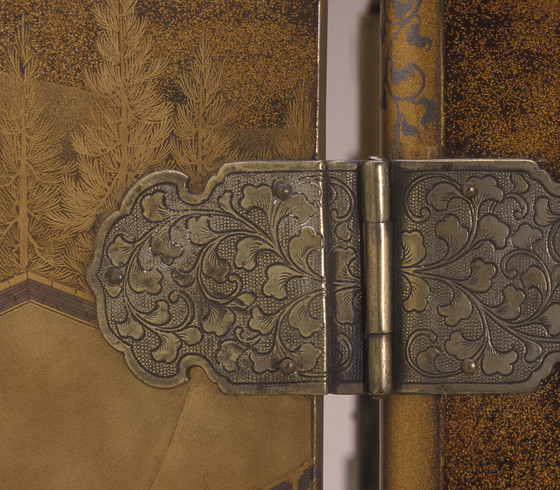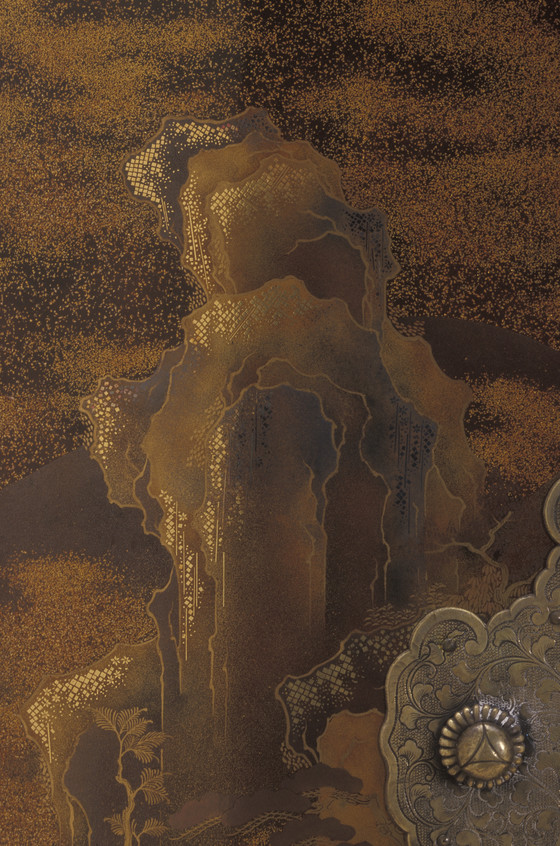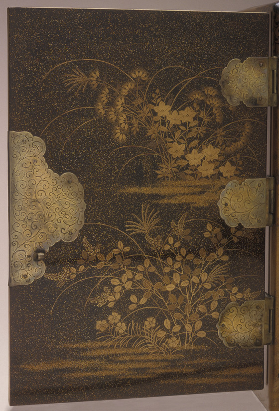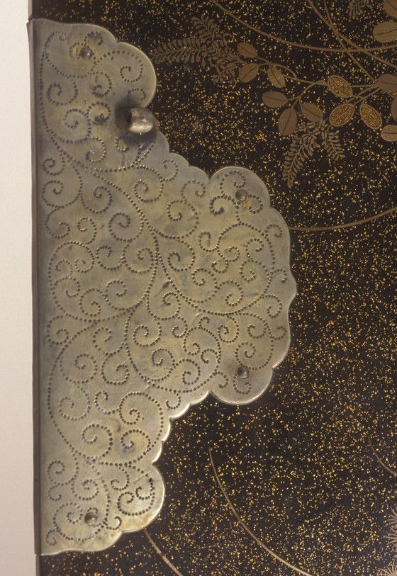 Lacquer over wood; gold and silver leaf, flakes, and powder (makie); silver mounts