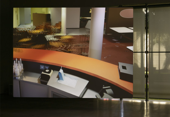 Single-channel video projection, with sound