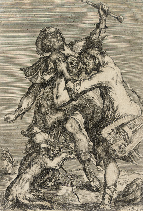 Hurdy-Gurdy Player Attacking a Pilgrim
