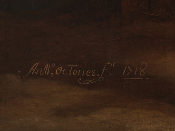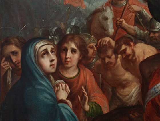 Bold and daring, this canvas is arguably one of Antonio de Torres’s masterpieces. Torres was one of Mexico’s leading painters of the early eighteenth century. He created an extraordinary number of works for the wealthy mining towns of San Luis Potosí and Zacatecas, in north-central Mexico. Part of his set of the via Crucis (Way of the Cross), this painting was originally commissioned by the Franciscan convent church of San Luis Potosí—one of the largest and most opulent in all of New Spain.