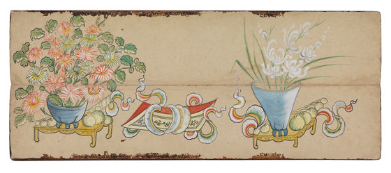 Opaque watercolor and ink on paper; Covers: gilded and lacquered paper