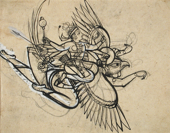 The Hindu God Vishnu Riding on His Mount Garuda