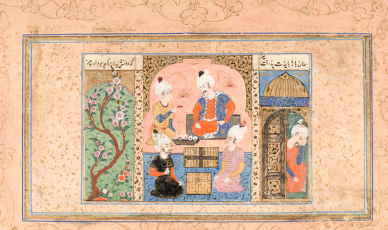 Vizier Buzurghmihr Showing the Game of Chess to King Khusraw Anushirwan, Painting Mounted onto an Album Folio