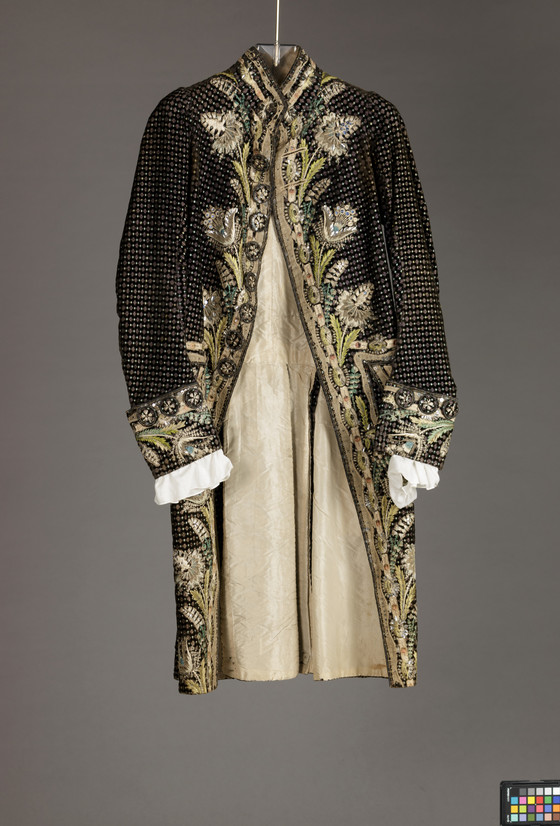 Silk cut and voided velvet with supplementary-warp patterning, silk embroidery, tulle and ribbon appliqués, metal sequins, and crystals
