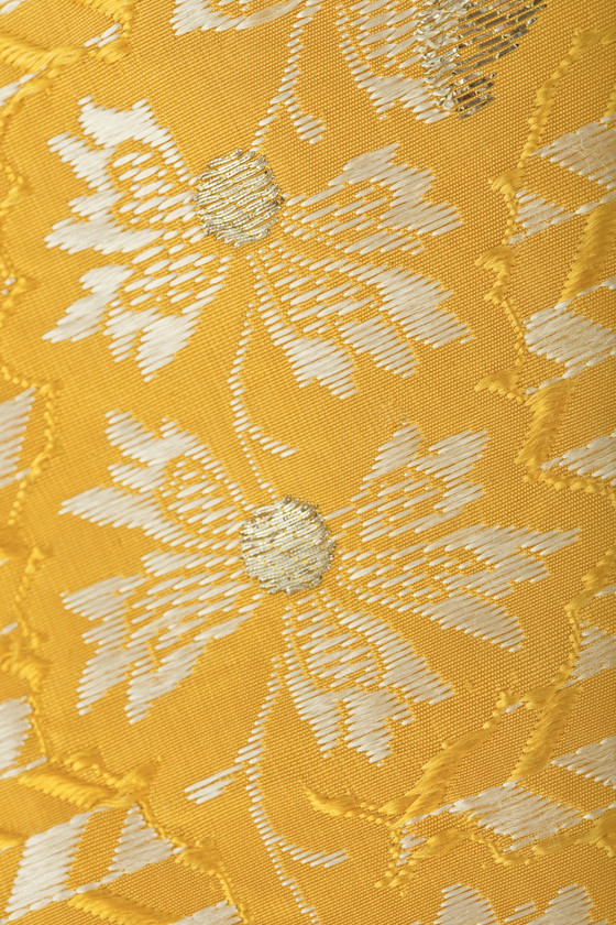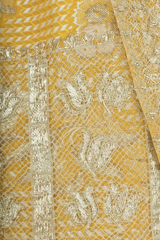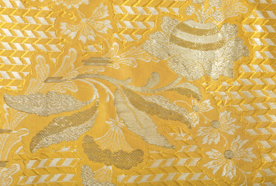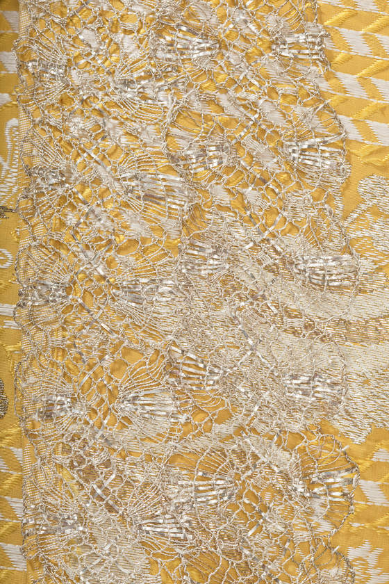 Silk plain weave with weft-float patterning and silk with metallic-thread supplementary-weft patterning, and metallic lace