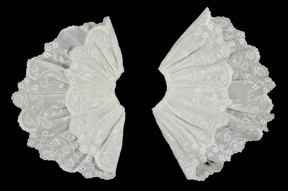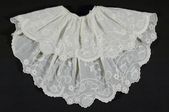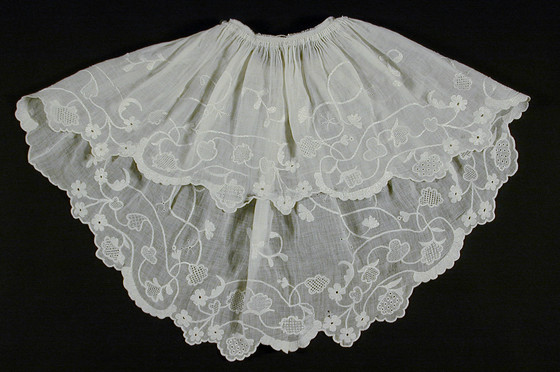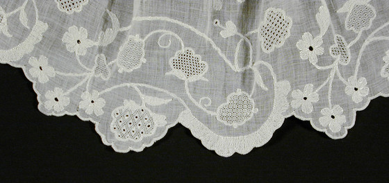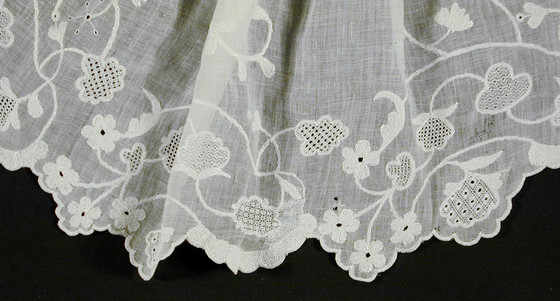 Silk embroidery (running, darning stitches) and pulled threadwork on cotton