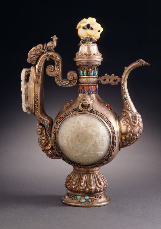 Silver inlaid with jade, carnelian, turquoise, and lapis lazuli
