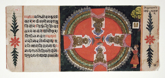 Worship of Jina Rishabhanatha (Adinatha) (recto), Shrine on Mount Shatrunjaya (verso), Folio from a Jain Manuscript