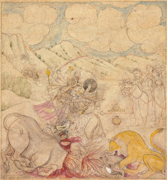 Durga Slaying the Buffalo Demon, Folio from a Devimahatmya (Glory of the Goddess)