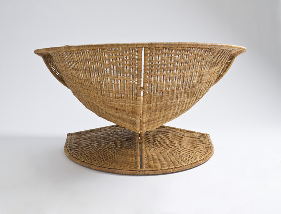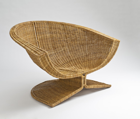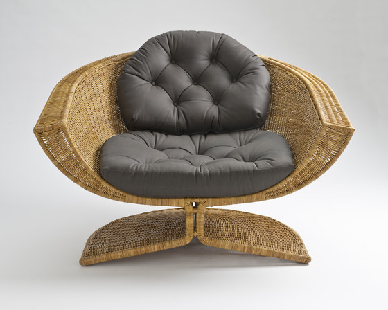 a) Chair: 33 x 52 1/2 x 40 in. (83.82 x 133.35 x 101.6 cm); b) Ottoman: 18 x 12 x 12 in. (45.72 x 30.48 x 30.48 cm)