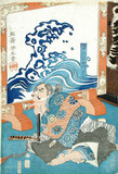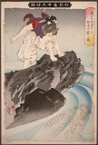 Ukiyo-e printmaker. Lived in Tōkyō. Pupil of Utagawa Kuniyoshi; also studied with Kikuchi Yōsai and was adopted by Tsukioka Sessai. In the 1870s worked as a newspaper illustrator. Author of many series of prints depicting bijin, aspects of the moon, historical heroes. In 1887 illustrated Ukigumo (the Drifting Cloud) by Futabatei Shimei, regarded as Japan's first modern novel. Died mentally deranged. Very popular: one of last of true ukiyo-e artists working in the mainstream of the late ukiyo-e tradition. Made prints of historical and heroic subjects as well as scenes of contemporary life and its increasing Westernization. best work from 1873 until his death; general work uneven and sometimes even bad; a mixture of ukiyo-e, yamato-e, and an ever increasing Western influence. An artist of considerable imagination; his drawings particularly fine. His tremendous popularity could explain the posthumous dates on some of his prints.