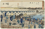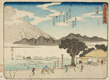 Fujieda, cut from a harimaze print of Fujieda, Shimada, and Kanaya