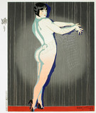 From 1918, he taught art at the Tokyo Higher Normal School, making achievements in terms of art education. Around 1934, he released woodblock prints using ukiyo-e techniques . In "Passage of Sudden Rain", people busily moving about at the port where junk boats gather after a sudden rain are depicted in soft colors that divide the color planes, clearly conveying Toraji's expressive intentions. Kazue Yamagishi is in charge of carving this work , and Keizaburo Matsuzaki is in charge of printing.