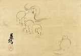 Traveling Hat, Stick, and Bundle under Cherry Tree