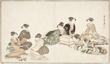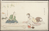 Kubo Shunman was raised by an uncle in Kodenma-cho, Kamei-cho, Kanda and other places in Edo. After studying literature with Katori Uohiko, in the late 1770s he began studying art with Kitao Shigemasa. He adopted the name Shunman in 1782 at the death of Katori. His first print was published in 1779, using the name Kōzandō. From that point, he illustrated a number of kibyoshi cheap novels, then turned to prints of beauties in the Torii Kiyonaga style. Facing stiff competition in that area, he turned to surimono, where he excelled. He was known among benigiraie artists (red-hating), and excelled later in life at mad poetry (kyōka).
