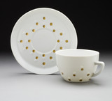 Gold Dot Motif Teacup, Saucer, and Dessert Plate