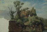 One of the most influential figures in the history of landscape painting in France, Pierre-Henri Valenciennes received his first lessons in painting at the Académie Royale, Toulouse, from the history painter Jean-Baptiste Despax (1709-1773). In 1769 the young artist went to Rome in the company of Mathias Du Bourg, a councilor of the parliament of Toulouse, through whom he met the famous collector and patron Étienne-François, duc de Choiseul. By 1773 Valenciennes was in Paris, where he entered the studio of the history painter Gabriel-François Doyen. His interest in landscape was encouraged by the landscape painters Hubert Robert and Jean Hoül, protégés of Choiseul. Valenciennes returned to Italy in 1777 and remained there until 1784/85. During a visit to Paris in 1781, he met Joseph Vernet (1714-1789), who instructed him in applying the vanishing point to landscape and the importance of using the sky as a source of light. Vernet also encouraged him to try painting en plein air (“in the open air”), advice that Valenciennes took up when he returned to Italy and began to make studies in oil on paper. In 1800 Valenciennes published Élements de perspective pratique à l’usage des artistes, suivis de réflexions et conseils à un élève sur la peinture et particulièrement sur le genre du paysage [Elements of practical perspective for the use of artists, connected from reflections and advice to a student concerning painting and particularly of the genre of landscape], which established him as one of the most articulate and influential promoters of painting from nature. In 1787, two years after returning to Paris, Valenciennes was received by the Académie Royale. His reception piece, Cicero Uncovering the Tomb of Archimedes (Toulouse, Musée des Beaux-Arts), like his other Salon paintings, set a classical theme in an imaginary landscape meant to evoke ancient Sicily. Although informed by his studies of nature, his Salon paintings reflect the popular Neoclassical style rather than any attempt to convey a direct impression of nature. In 1812 the artist succeeded Dandrillon as professor of perspective at the École Impériale des Beaux-Arts, a position he occupied until his death. Valenciennes was responsible for the establishment in 1816 of the Prix de Rome in historical landscape.