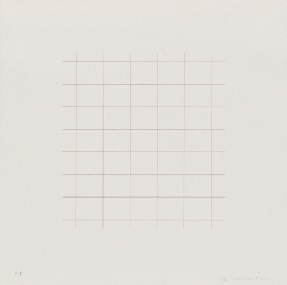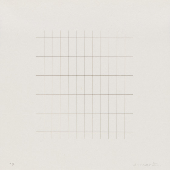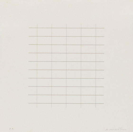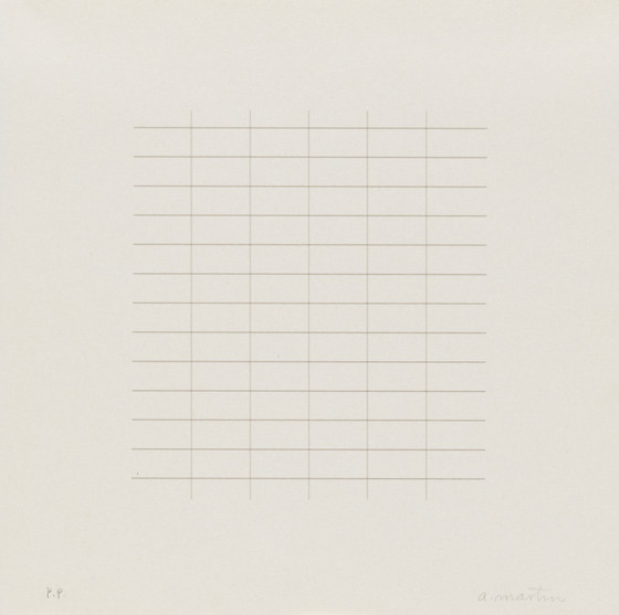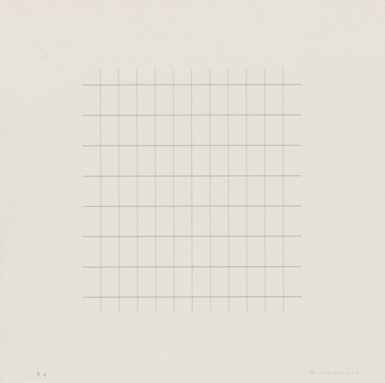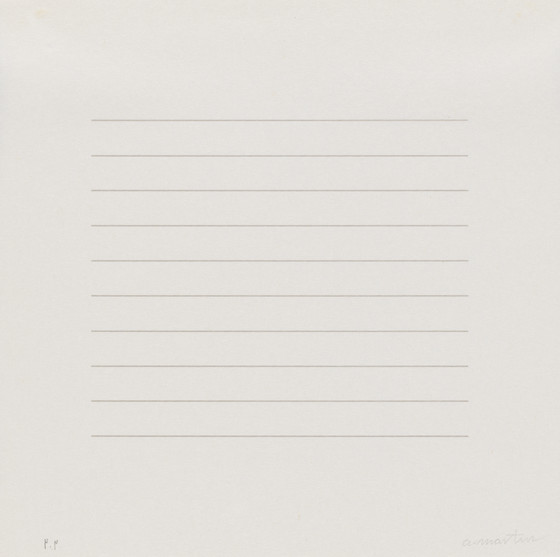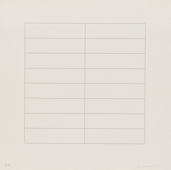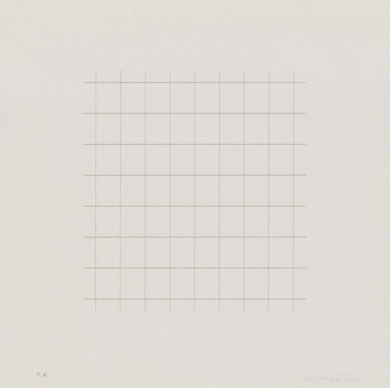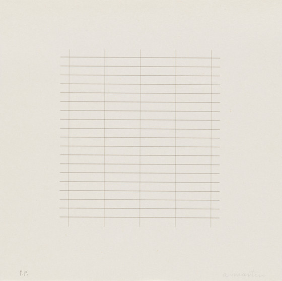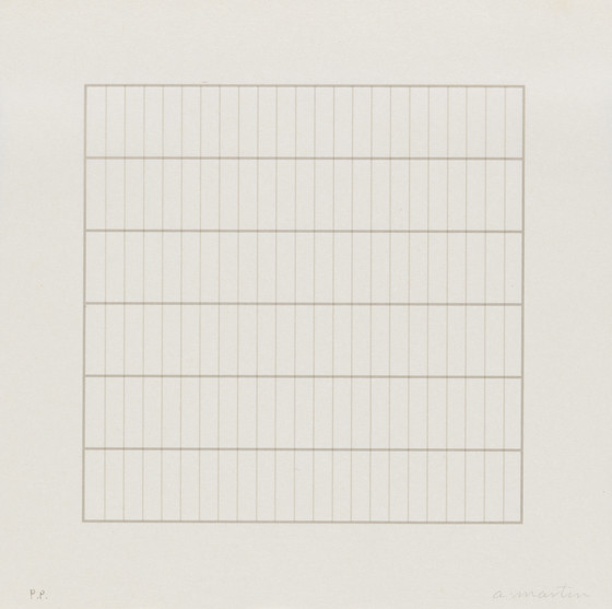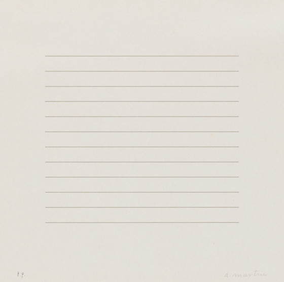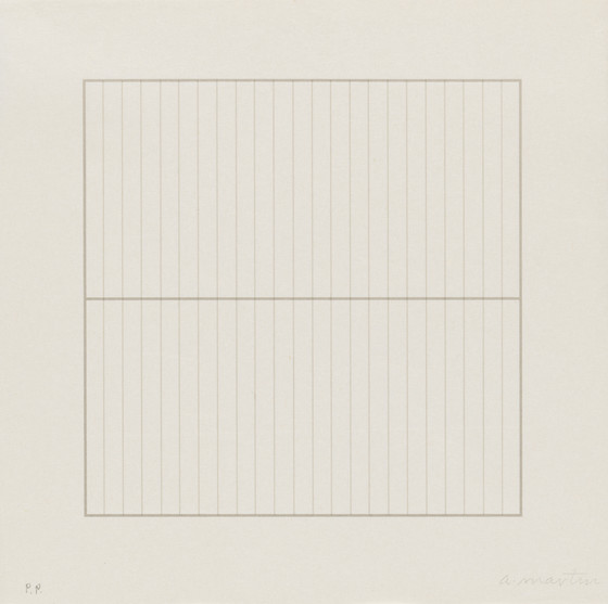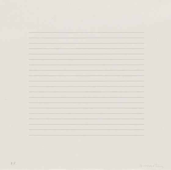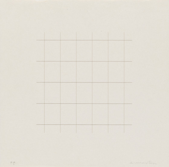 Agnes Martin's monumental thirty-print suite, On a Clear Day, was produced near the end of a seven-year period (1967–1974) in which the artist ceased painting entirely. Living in self-imposed isolation on a lonely mesa in New Mexico to which she had escaped after several years in New York, years in which she had achieved both fame and critical success, and fleeing what she saw as the burden of endless distractions, inescapable impediments to the necessary clearing of her mind to achieve her goal of an "egoless" art embodying beauty, freedom, and happiness, she sought refuge in near-total seclusion. This enforced period of artistic inactivity and contemplation, part of the artist's rigorous path toward finding truth in her art, was finally broken in 1971, when Martin was invited to make the prints that would become, two years later, On a Clear Day. Indeed, shortly after completing the prints, she returned to painting, producing a steady stream of celebrated work until her death in 2004. As with all of her mature work, the prints of On a Clear Day take as their subject matter the grid, rendered with an astonishing diversity of expression, focused with severe rigor yet compositionally and interpretatively open. About her grids, Martin famously said, "My formats are square, but the grids never are absolutely square; they are rectangles . . . . When I cover the square surface with rectangles, it lightens the weight of the square, destroys its power." Elsewhere, she explained that the grid came to her as an inspiration. "I was thinking about innocence, and then I saw it in my mind—that grid . . . . So I painted it, and sure enough, it was innocent." Martin's grid of rectangles, as one critic noted, "eradicated the hierarchical balancing of parts. The effect was not only a surface in perfect equilibrium, but one that epitomized unity and wholeness." While her grid was early on interpreted as a purified analog of nature, Martin vigorously rejected this reading. "My work is anti-nature," she declared. "[It] is about emotion—not personal emotion [but] abstract emotion. It's about those subtle moments of happiness we all experience." She succinctly defined art as "the concrete representation of our most subtle feelings." Grander in conception than any of Martin's paintings, On a Clear Day condenses through multiplication thirty ways of constructing a grid, of expressing happiness, beauty, freedom, and the impossibility of, though yearning for, perfection. Its individual parts, recalling the number of days in a month, imply the passage of time. Its title declares the long-sought-for clarity the artist had struggled to find in the barren New Mexican desert. One of the great works of graphic art of the late twentieth century, On a Clear Day announces with luminous clarity and conviction Martin's return to aesthetic wholeness. LACMA's collection includes the painting Untitled V (1981) and the drawing Not the One (1966) by Martin, who is one of the most important figures of postwar American art. Kevin Salatino, Curator, Prints and Drawings, (2008)
