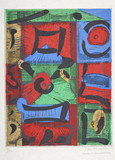Born in Hachioji, Tokyo. Graduated from Waseda University in 1957 and began working immediately as a print artist. His first solo exhibition was at Yoseido i 1959. His first showing with the Nihon hanga kyokai was 1959, and he became a member of that group in 1961. Kidokoro participated in the Tokyo International Print Biennial i 1964 followed by several years of participating in international biennials, notably in Switzerland, Paris, and Sao Paulo. He established the carver's association (nomi no kai 鑿の会 in 1967, and created a portfolio of engravings titled, "Nomi". in 1967 also, he received the Ministry of Education grant for artistic research overseas, going to Paris and Geneva. From 1968 to 1977, Kidokoro taught at Musashino Art University in Tokyo, additionally teaching at the Musashino Art Academy from 1972 to 1988, and also at Kanazawa Municipal College of Arts from 1978 to 1988. He died of a sudden heart attack in July of 1988.