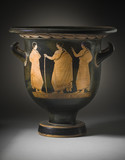 Bell-Krater with (A) a Maenad Crowning Young Dionysos, Watched by a Horned Youth (Pan?), and (B) Three Youths