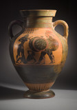 Amphora with Herakles Fighting Geryon and Eurytion and Dionysos Accompanied by Three Satyrs and a Woman