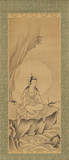 Eighth daughter of Emperor Gomizuno'o and founder and abbess of Rinkyūji Imperial Convent 林丘寺. (She established this convent in 1682) She trained in Buddhist meditation and followed Zen teachings, turning her interest to the recently imported Chinese sect, Ōbaku, based at Manpukuji, south of Kyoto. One self-portrait of her remains in the collection of Manpukuji, as does her portrait of Gomizuno'o. She had studied her precepts with the monk Ryōkei 龍溪 in 1665, who was the founder of Shōmyōji 正明寺 in Shiga and also Zen teacher of Emperor Gomizuno'o. Painting Kannon was part of the princess's meditative religious practice, and she completed over 1000 such paintings, plus another 3000 of Kannon riding a lotus leaf (see example at Metropolitan Museum of Art, NYC). She had studied painting with Kanō Yasunobu 狩野安信 (1613-1685), younger brother of Tan'yū and head of the Kanō school.