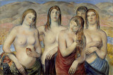 Carroll traveled to Europe in 1924 and again in 1927, the second time as a Guggenheim Fellow. He taught at the Art Students League in New York in the late 1920s, and in 1930 he was appointed head of the art department of the Arts and Crafts Society in Detroit. He taught there for more than a decade, during which time he painted frescoes for the Detroit Institute of Arts. His easel paintings underwent a transformation and lost their modernity as he became obsessed with images of mysterious, wide-eyed, sad females. During the early 1940s Carroll briefly abandoned art to settle in East Chatham, New York, to raise cattle for the war effort. Within a short time, however, he returned to painting and teaching, resuming his position in New York at the Art Students League in 1944 and opening his own school in 1951. His late art exemplified a new style, more opaque and vigorous than his earlier, softly romantic paintings.