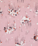 Textile Design of Red Flower, Green Leaves, and Swirling Lines
