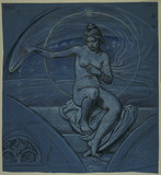 In 1881 Vedder won the Prang Christmas card competition, inaugurating his active participation in the field of decorative arts. He soon became a sought-after designer of stained-glass windows, book illustrations, and murals, receiving commissions for murals from major architects and assignments from leading journals. His most important murals were for the home of Collis P. Huntington, 1892-93 (now Yale University Art Gallery, New Haven, Connecticut), the Walker Art Building at Bowdoin College, Brunswick, Maine, 1895-1900, and mosaics for the Library of Congress, Washington, D.C., 1897; his most famous illustrations were for the Rubáiyát of Omar Khayyám, 1884.