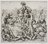 The controversial social satires of Paul Cadmus gained wide visibility during the 1930s. More recently his superb academic drawings have garnered wide acclaim. The son of two artists, Cadmus entered the National Academy of Design in 1919. During the 1920s he studied at the Art Students League while supporting himself with illustrations published in the New York Herald-Tribune and used in commercial advertisements. In 1931 he left the United States with his close friend Jared French (born 1905) for a two-year stay in Europe, spending most of his time painting in a fishing village in Majorca. In December 1933 he returned to New York and immediately became involved with the Public Works of Art Project, painting The Fleet’s In!, 1934 (Naval Historical Center, Washington, D.C.). This scene of rowdy sailors cavorting with women made Cadmus a celebrity overnight.