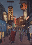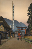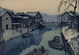 The son of Yoshida HIroshi, Yoshida Tōshi began training in drawing at age 3 and woodblock print making from the age of 13, producing prints from age 15. After graduating from Gyōsei middle school, he attended Dōshūsha Design Research Center, and Pacific Art School (Taiheiyō gakkai) to learn oil painting. Beyond what he learned about printmaking from his father, he also studied etching and lithography. In 1930, Tōshi traveled with his father to India, Burma, Malaysia and southeast Asia. In 1936, he traveled again with his father in northeast China and the Korean peninsula. In 1938, he exhibited with the Pacific Art School. In the postwar era, Tōshi's work was accepted for the first time into the Nitten national domestic art exhibition in 1947. He became active in the Japan Print Association in 1948, and entered international print biennials worldwide. In 1950, Tōshi withdrew from the Pacific Art School group and found the Plus Artist Group. It was around this time that he was producing abstract prints and drawings. In 1951, he became a full member of the Japan Print Association. He traveled to the United States in 1952 with the support of the Japan Society of New York, lecturing across the country and demonstrating woodblock printing technique. He then crossed to Europe. In 1954, he returned to the U.S. with his brother Hodaka, again lecturing and exhibiting their work. Afterwards, they went on to Cuba and Mexico. From 1966 forward, Tōshi did frequent lecture series and exhibitions in America. Starting in 1973, he traveled to east Africa and began producing prints of animals that he sketched there. He followed with trips to India, Australia and the South Pole, and in each of these places he sketched farmers and their implements for his prints. In 1980, in Miasa, Kitaazumi district of Nagano Prefecture, in an old schoolhouse, Tōshi established the Miasa Culture Center as a place to teach woodblock printing, glass blowing and ceramics, among other decorative arts.