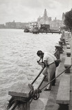 Typical landscape of the Chinese countryside, with an ancient temple. Near Sanmenxia, on the Yellow River. August 1958.