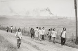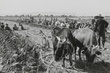 China (the banner bears the inscription "Let us work for the people's happiness". The "pointed nose" represents, in China, the white man. He is followed by his servants in dog and falcon masks.)