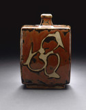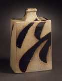 Hamada Shōji was one of the first group to be named Living National Treasure (Intangible Cultural Property, ningen kokuhō 人間国宝) in 1955 for his fostering of mingei arts, in particular ceramics. His work is particularly admired for its balance and proportion. He drew from a broad swath of ceramic forms and glazes, Japanese, Okinawan, Chinese and Korean. He was one of the founders of the Mingei movement, alongside Yanagi Sōetsu and Kawai Kanjirō. He moved to and later promoted the town of Mashiko in Tochigi Prefecture, as a center for study of mingei style, where to the present, aspiring craftspeople can go to learn the art of ceramics. Hamada's work was primarily functional and often adapted traditional utilitarian forms from Okinawa. He left a legacy with the persimmon and iron glazes that he developed and popularized. Some works he would overglaze or resist glaze using wax, a technique found in Tang Dynasty (618-907) Chinese ceramics. With Bernard Leach, Hamada visited various countries abroad starting in the early 1950s to promote mingei pottery, and had a strong influence on American potters of the time.