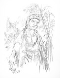 Bust-length self-portrait with drawing pencil
