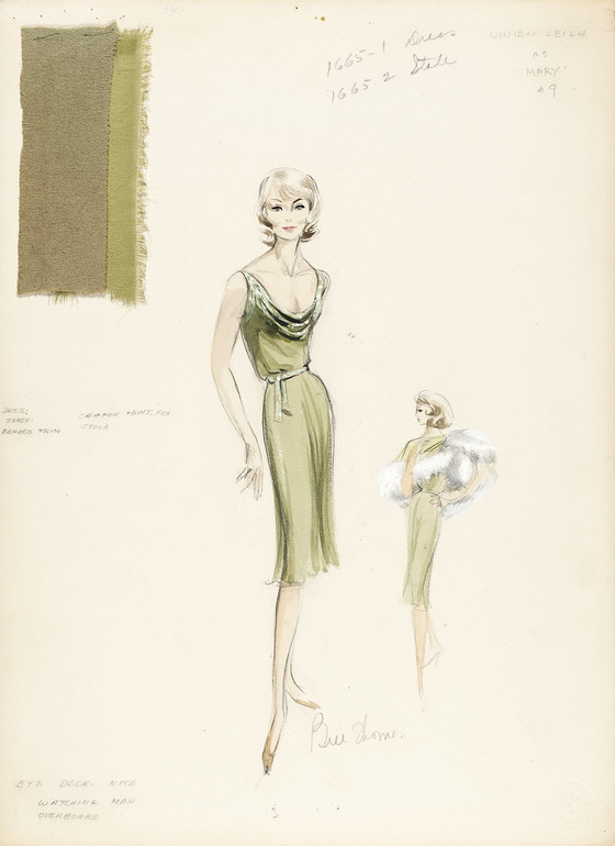 Costume Sketch of Vivien Leigh as Mary Treadwell in the Columbia Pictures Corporation Production, 'Ship of Fools'