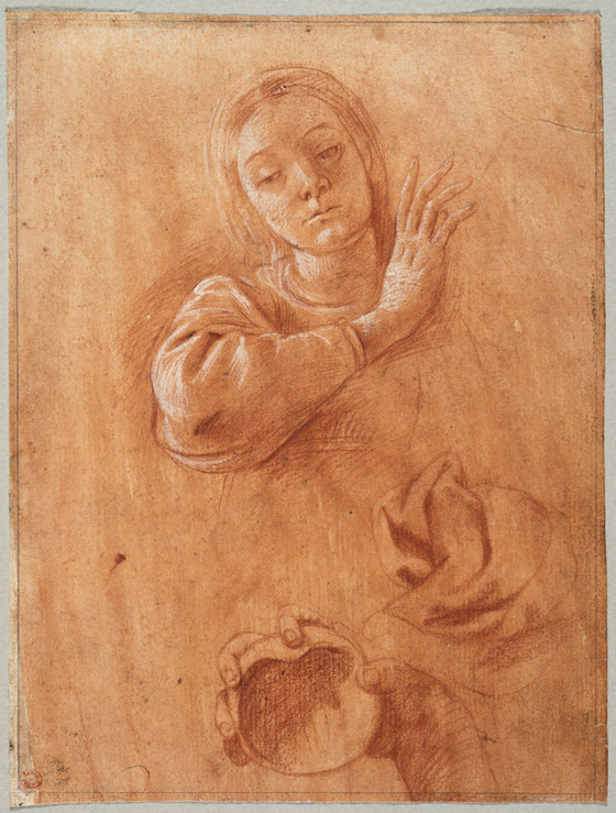 Studies of the Virgin, Drapery, and the Hand of Saint John the Baptist Holding a Shell