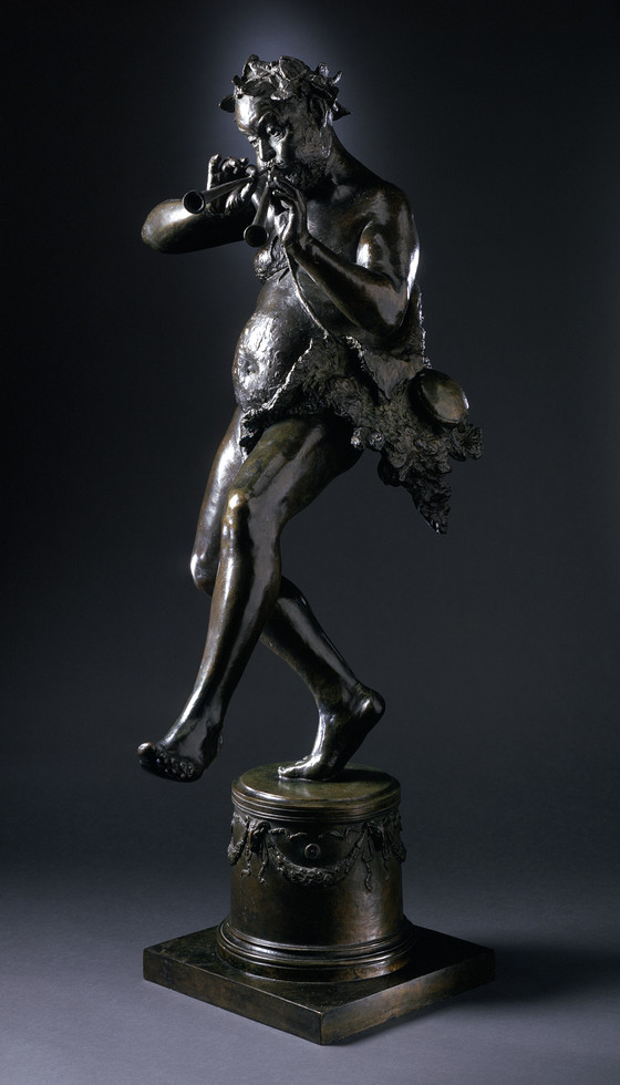 Niehaus had used his savings from his work as a stonecarver to go to Munich to study and similarly used the proceeds of his first important commissions to return to Europe, to spend two years in Rome, perhaps executing the commissions there and pursuing further his studies of the nude and the antique. He had a studio in the Villa Strohl-Fern, next to the Palazzo Borghese, where he modeled numerous figure studies in the manner of the antique. Of these apparently experimental works, only three survived: Caestus, modeled c. 1883-85 (casts of 1901, Metropolitan Museum of Art, New York, and National Museum of American Art, Smithsonian Institution, Washington, D.C.), The Scraper (Greek Athlete Using a Strigil), modeled c. 1883-85 (a cast at Brookgreen Gardens, Murrell’s Inlet, S.C.), and the museum’s Silenus.