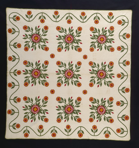 Quilt, 'Whig Rose Variation with Running Vine Border'