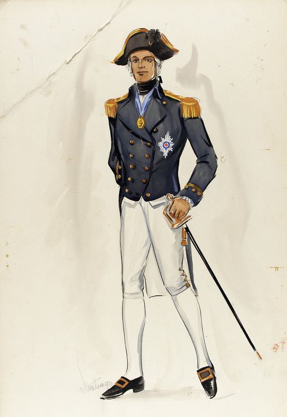 Costume Sketch of Lawrence Olivier as Captain Horatio Nelson in the Alexander Korda Films Production of 'That Hamilton Woman'