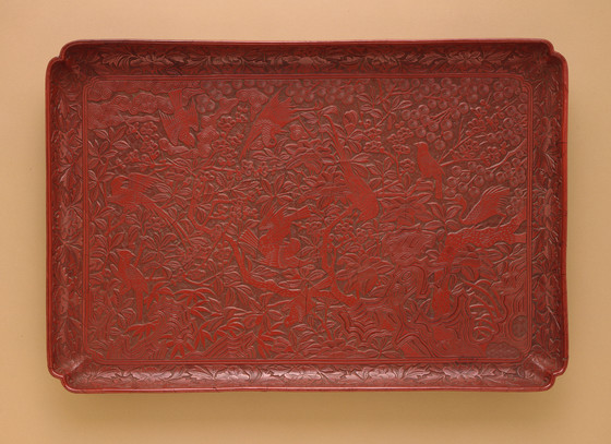 Carved red lacquer on wood core