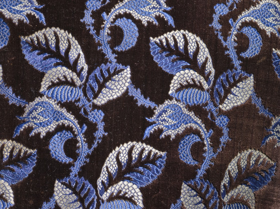 Silk cut and voided velvet on plain-weave foundation with supplementary weft-float patterning