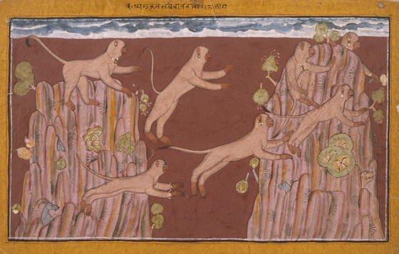 Monkeys Jump from Crag to Crag, Folio from the 'Shangri' Ramayana (Adventures of Rama)