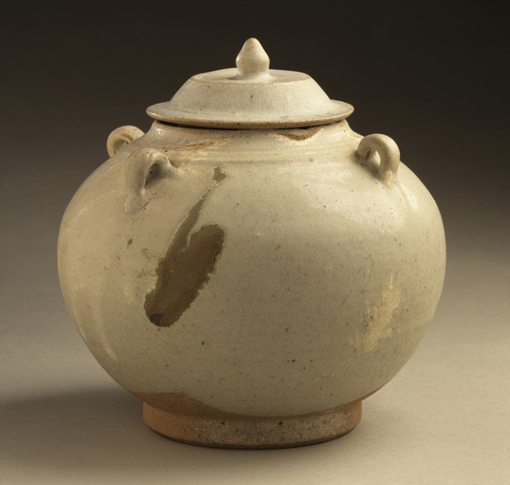 Wheel-thrown stoneware with applied decoration and cream glaze