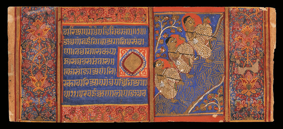 Three Monks Fording a River (recto) and Two Raginis (verso), Folio from the “Devasano Pado” Kalpasutra (Book of Sacred Precepts) and Kalakacharyakatha (Story of the Teacher Kalaka)