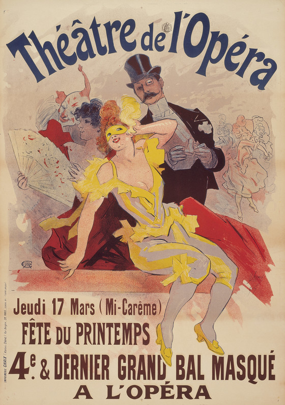 Lithograph in vermilion, yellow, Prussian blue, brown, and light gray