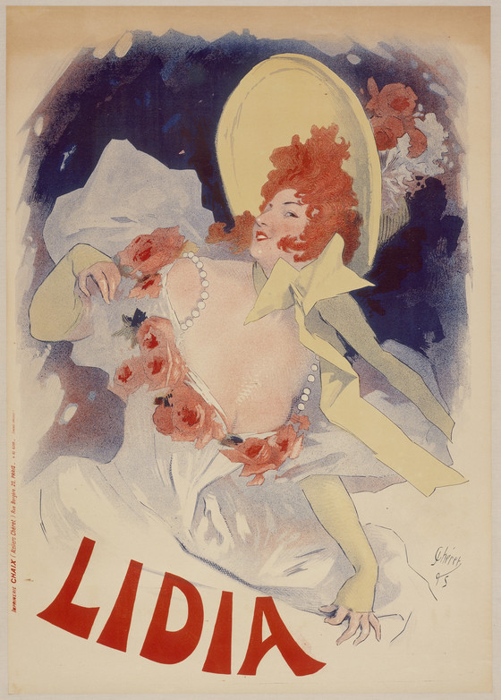 Lithograph in vermilion, dull yellow, cornflower blue, and gray blue