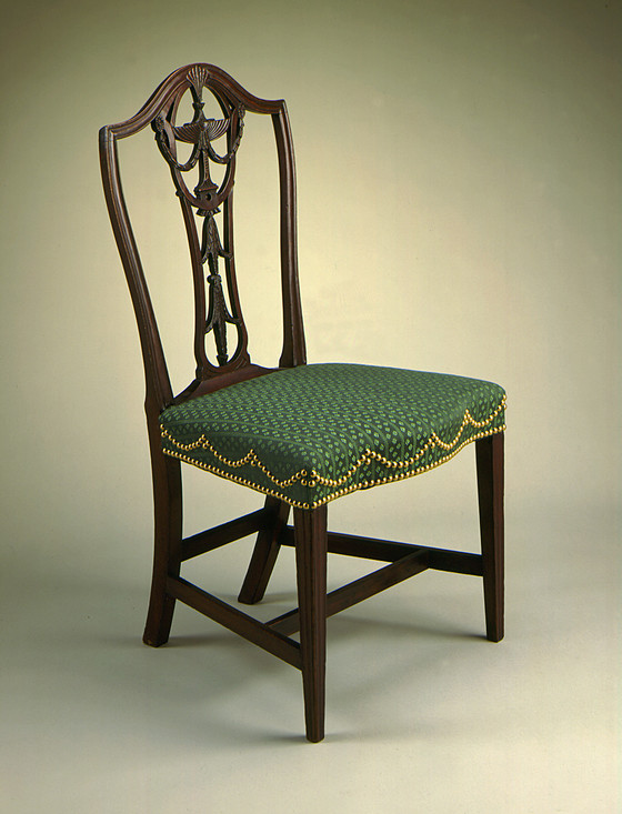 Mahogany, maple, upholstery (replaced)